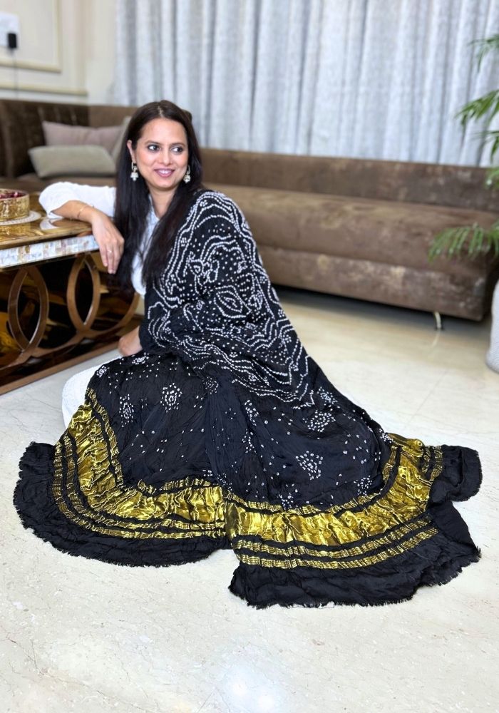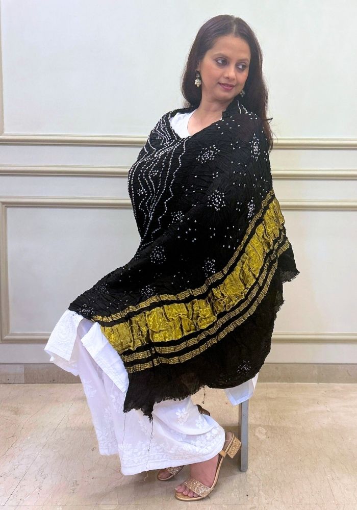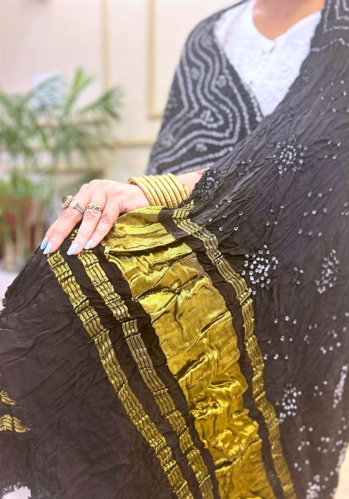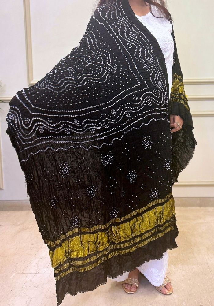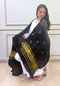Elegant Black Pure Gajji Silk Bandhani Dupatta with Zari Accents