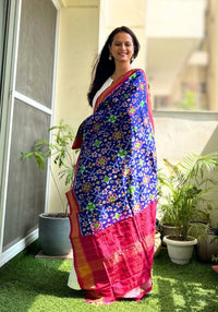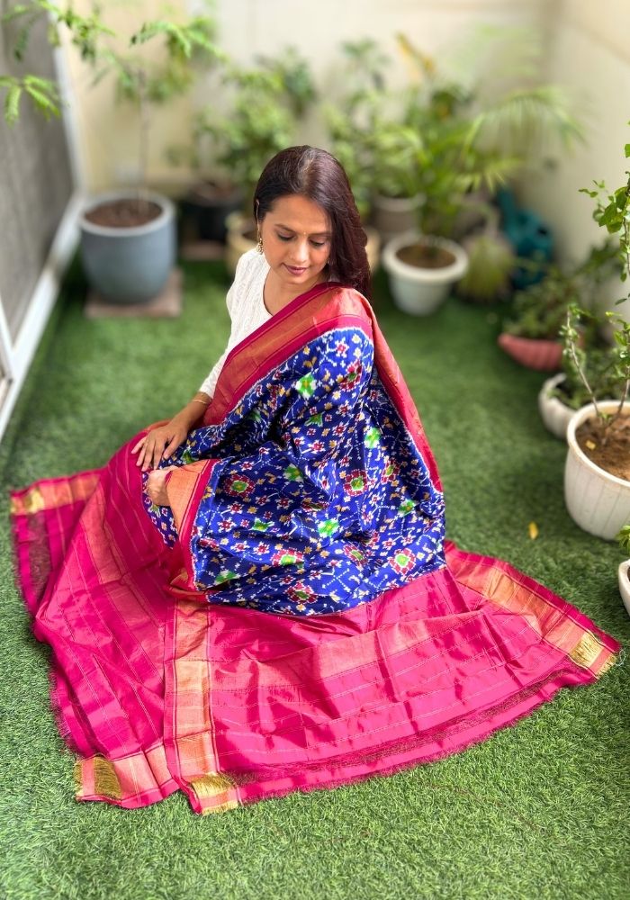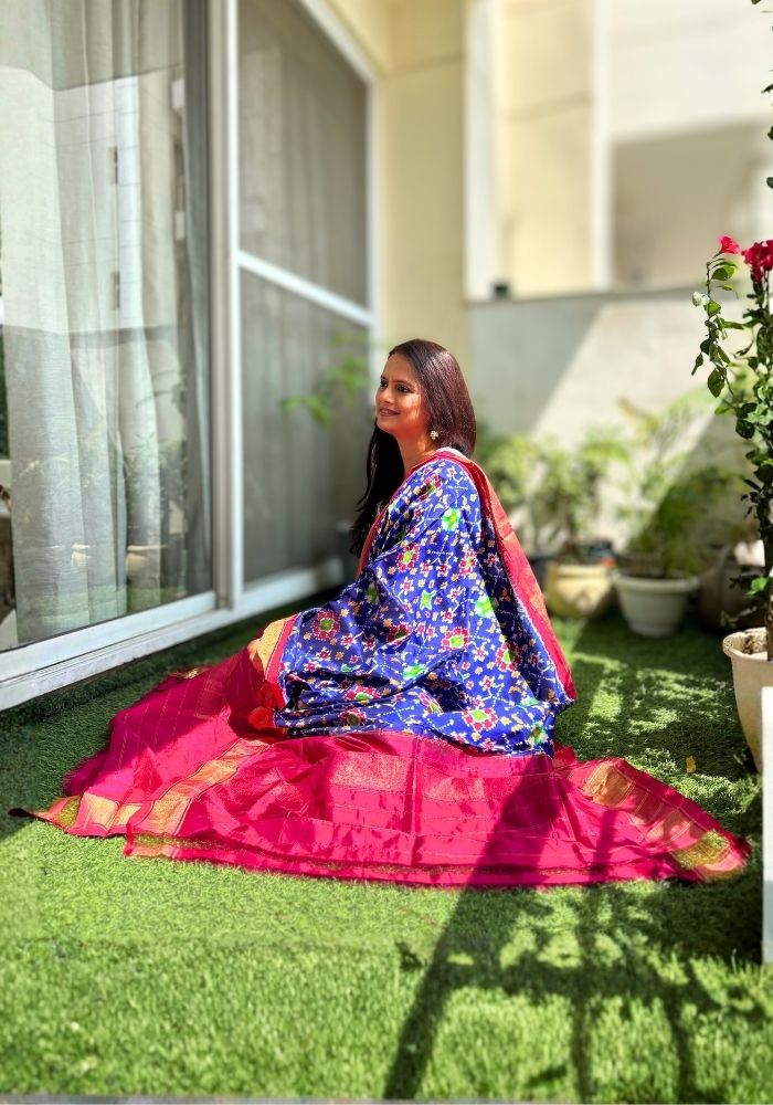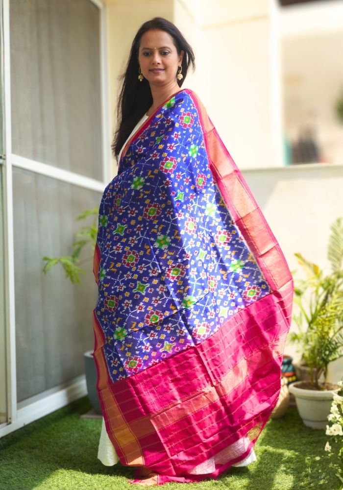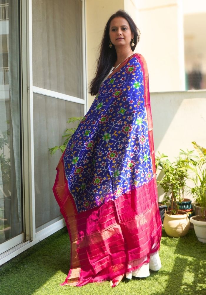 Vibrant Blue & Pink Pochampally Double Ikat Mulberry Silk Dupatta