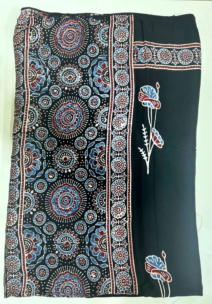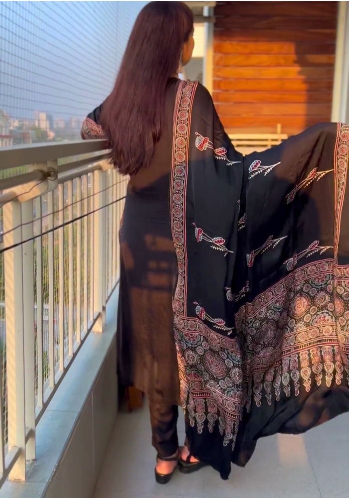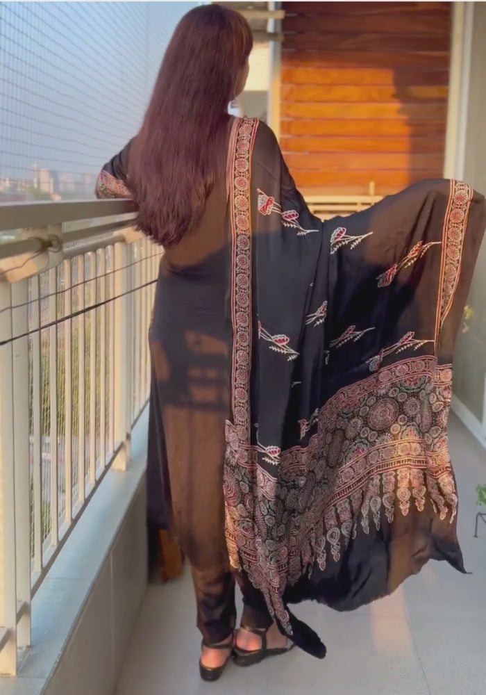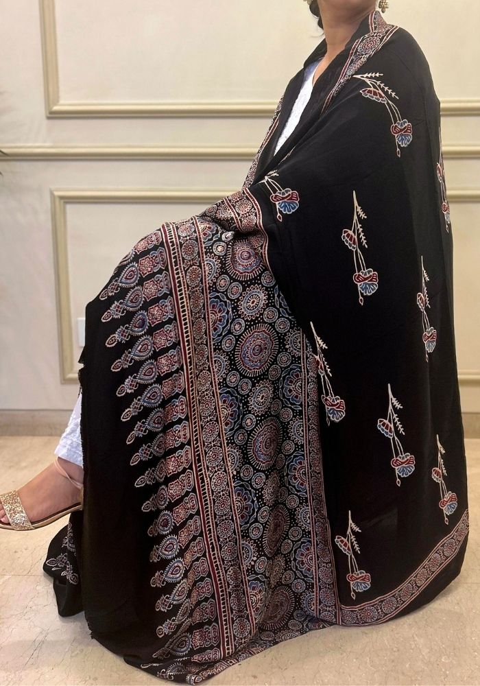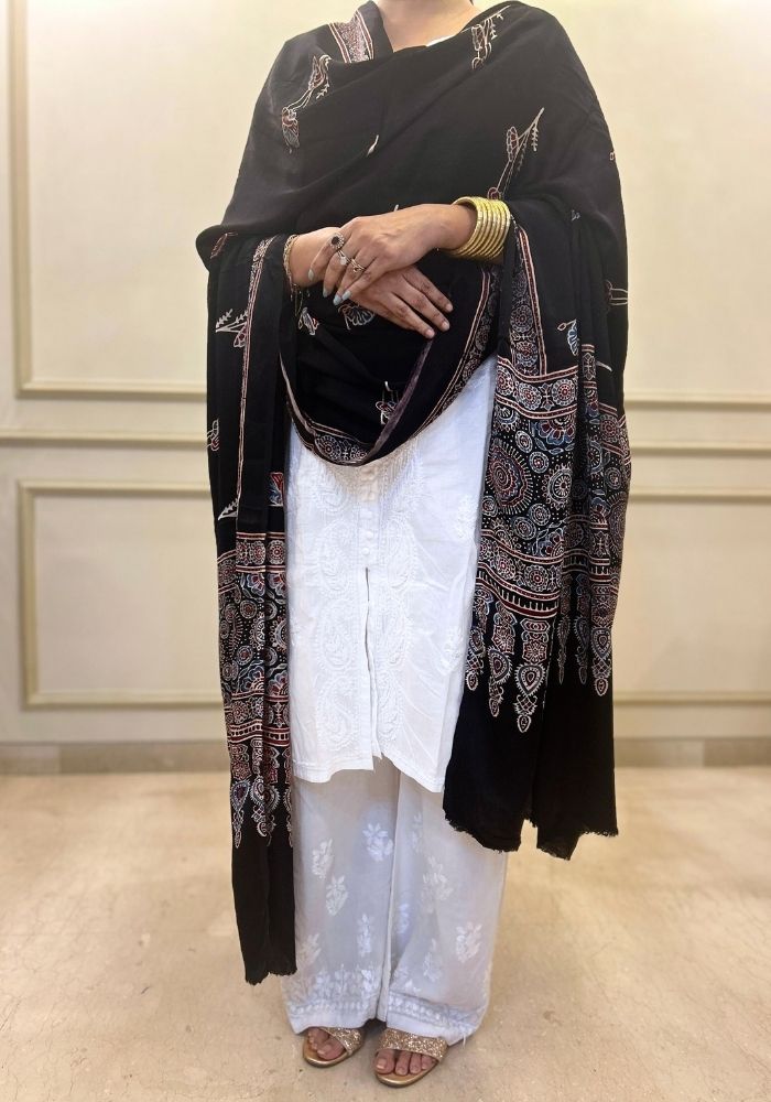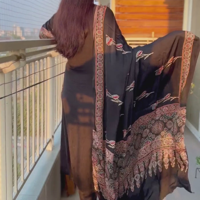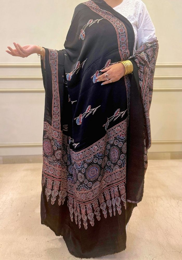 Black Modal Silk Ajrakh Hand Block Dupatta