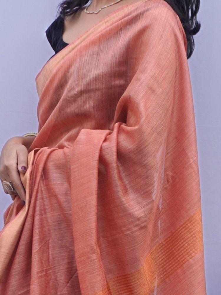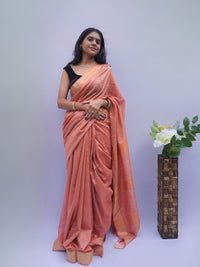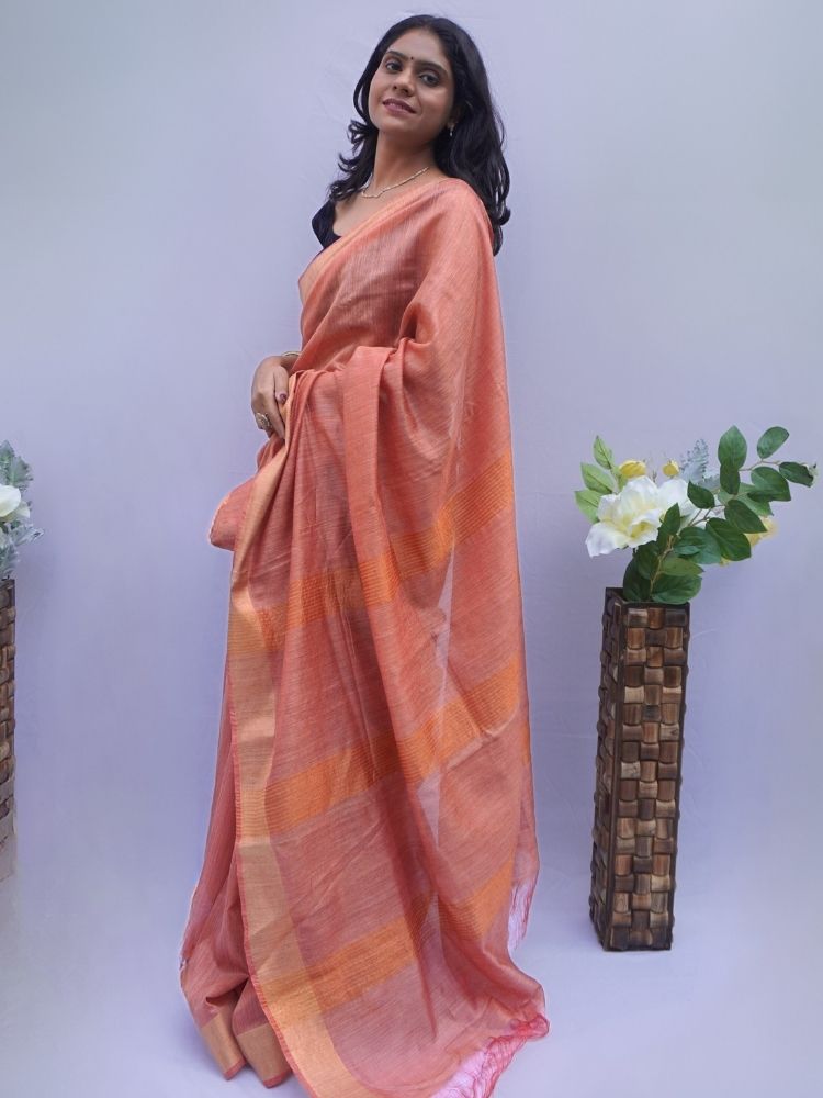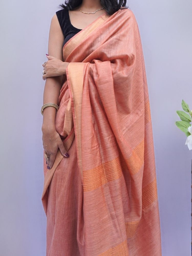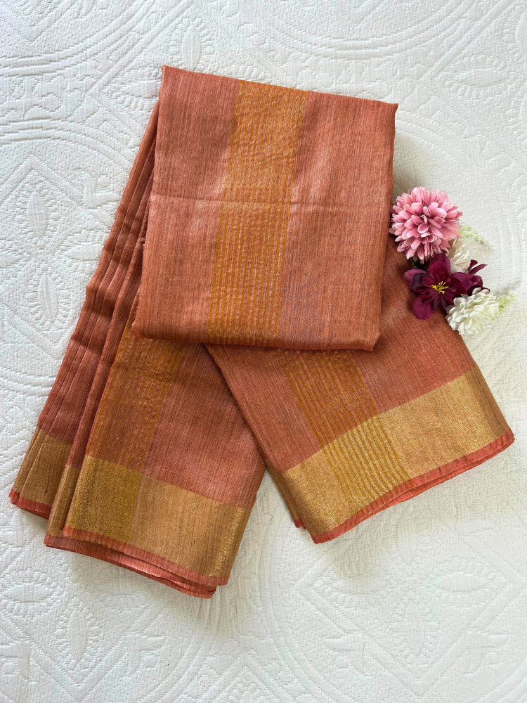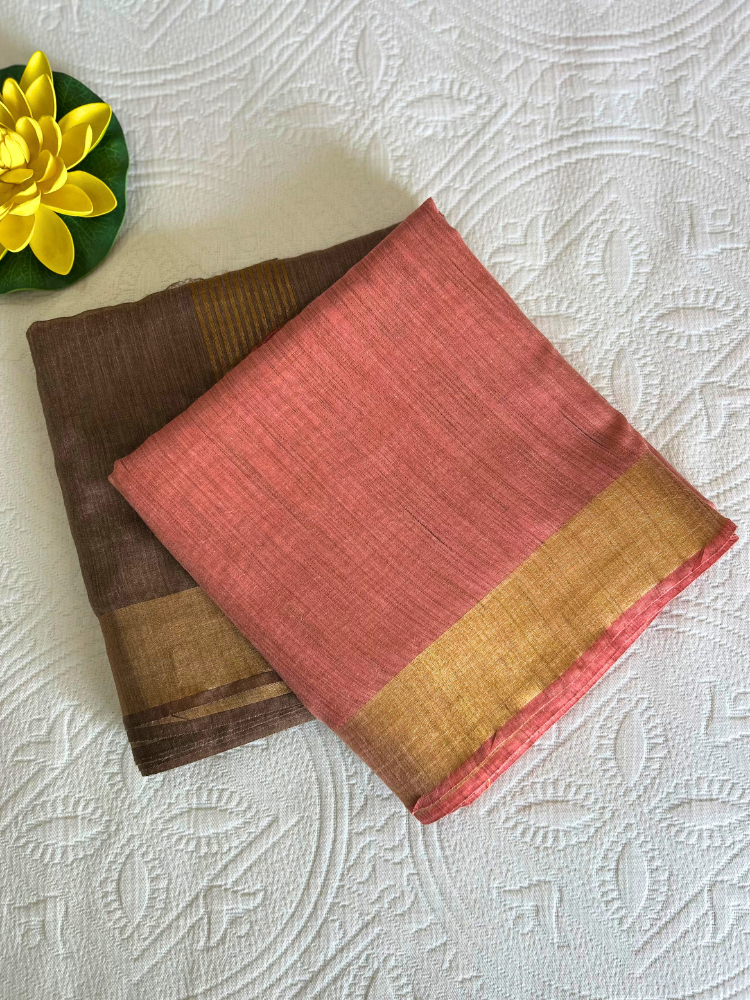 Elegant Silk Cotton Plain Saree with Golden Border – Brown