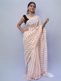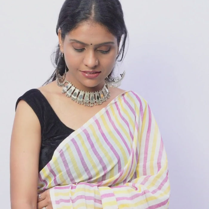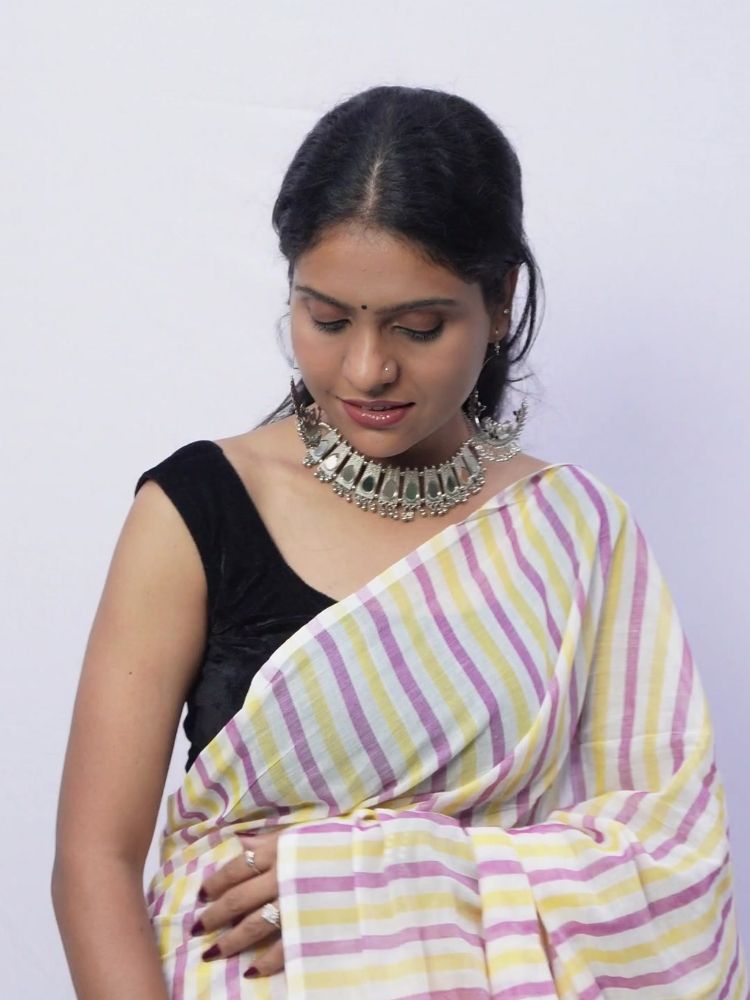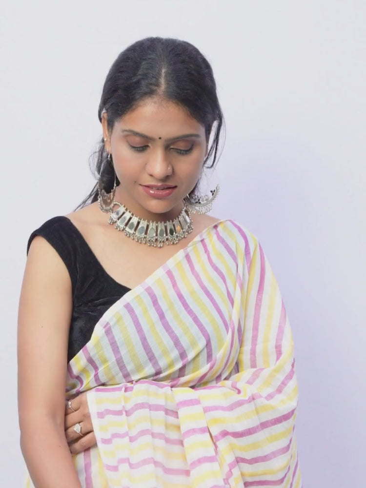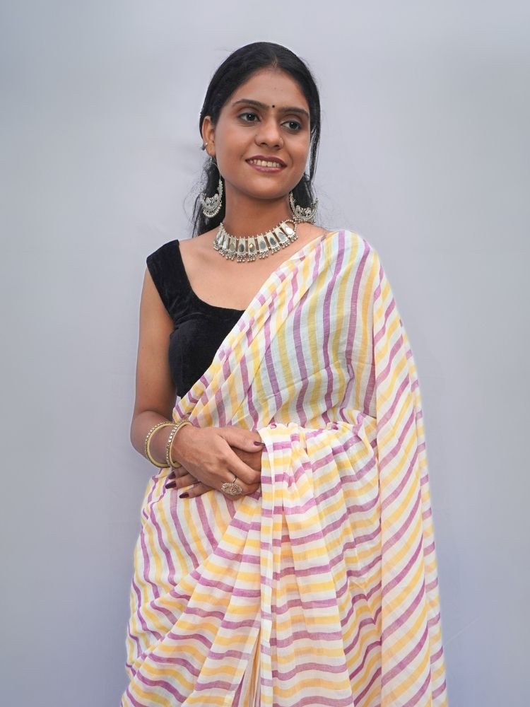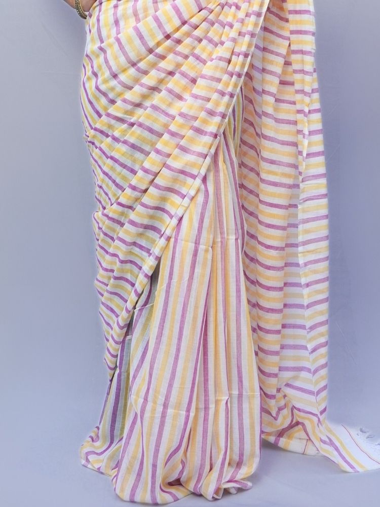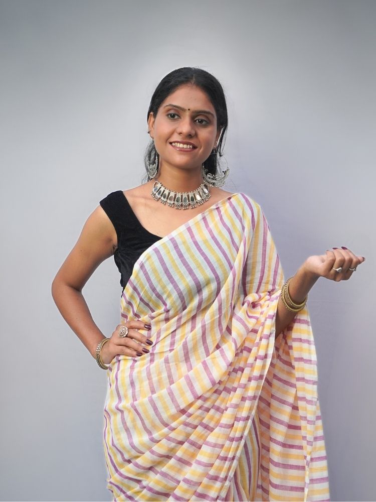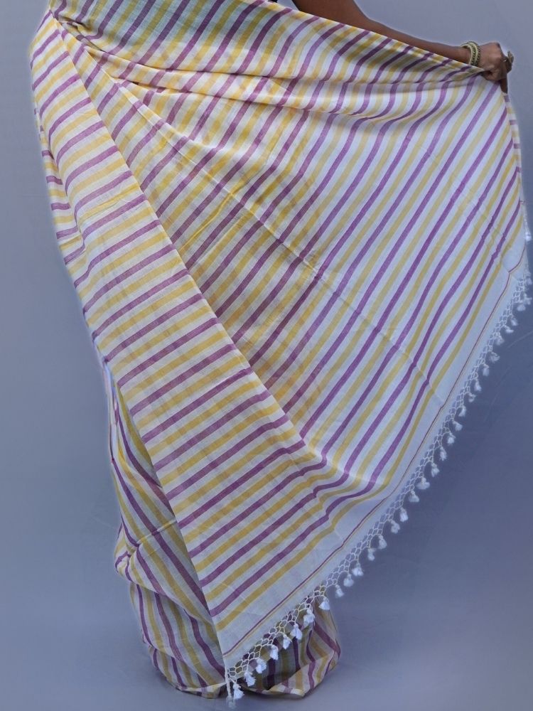 Lavender Grace – Cream & Lavender Striped Mul Cotton with Tassels