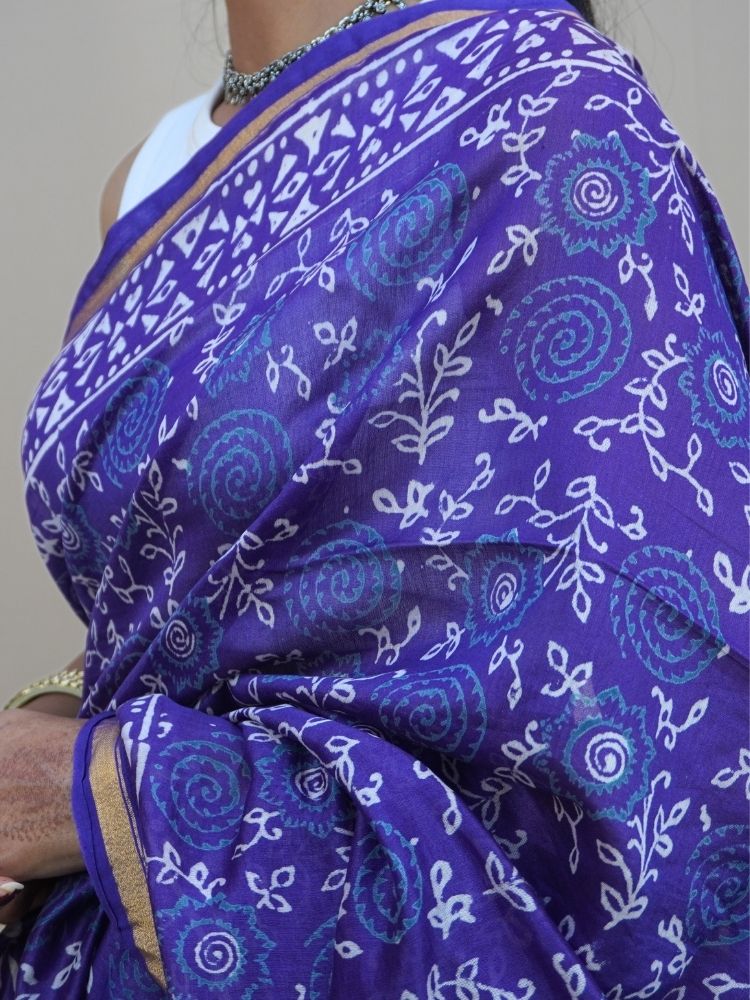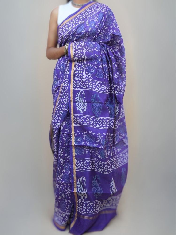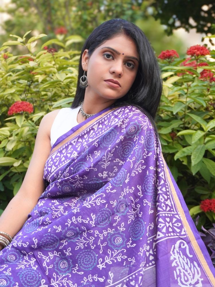 Lavender Grace – Handcrafted Chanderi Silk Saree with Bagru Prints