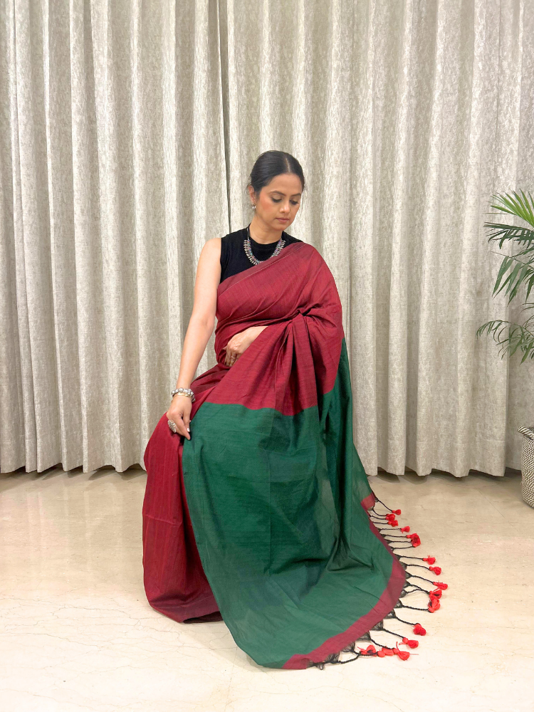 Pure Khadi Cotton Handloom Saree with Contrast Pallu – Green
