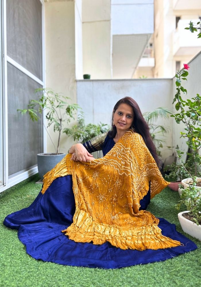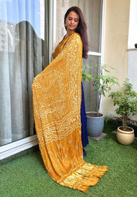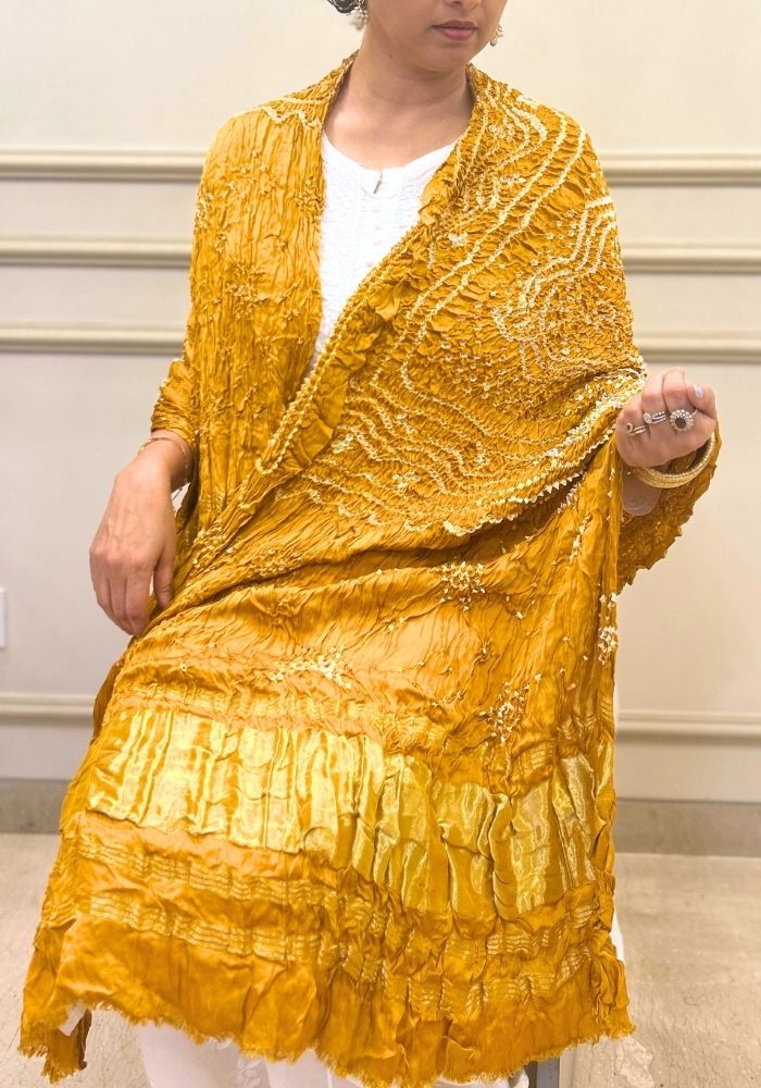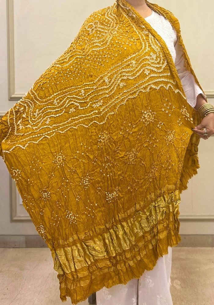Sunshine Yellow Pure Gajji Silk Bandhani Dupatta with Zari Detailing